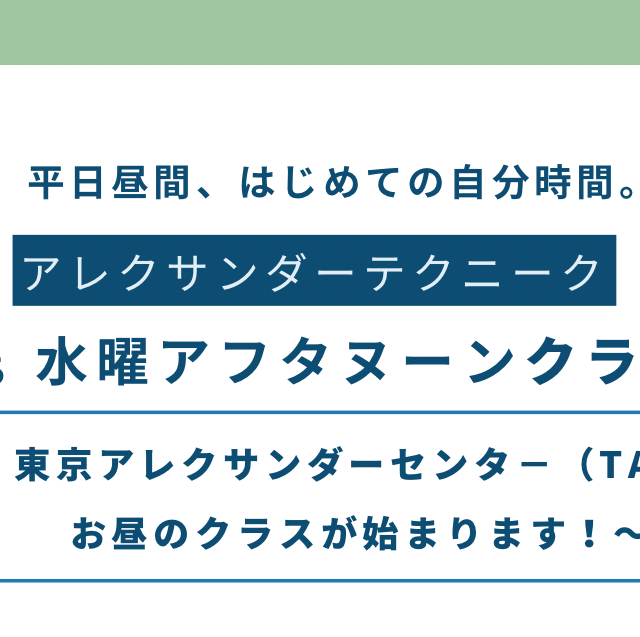 2025年9月13日10/12(日)、北千住の「東京アレクサンダーセンター(TAC)」にて、ワークショップを開催します。おかげさまで10/12(日)のワークショップは満員御礼となりました。次回11/23(日)のワークショップは受付中です。詳...